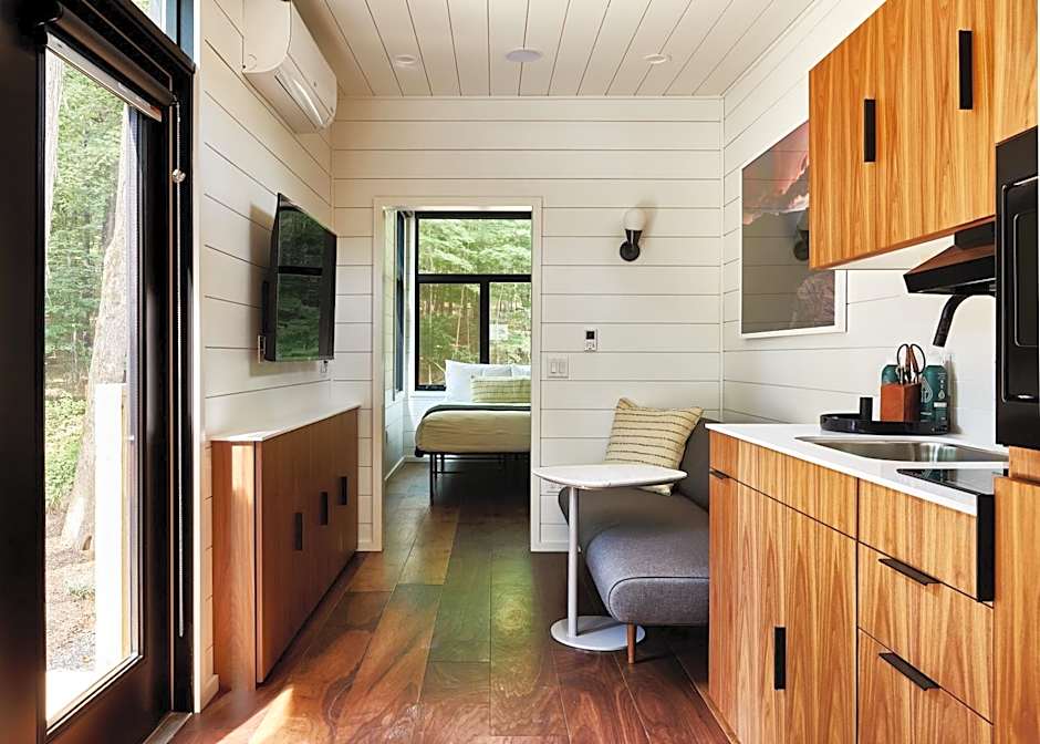 The fireplace is the standout feature of this quadruple room. The unit has 2 beds.